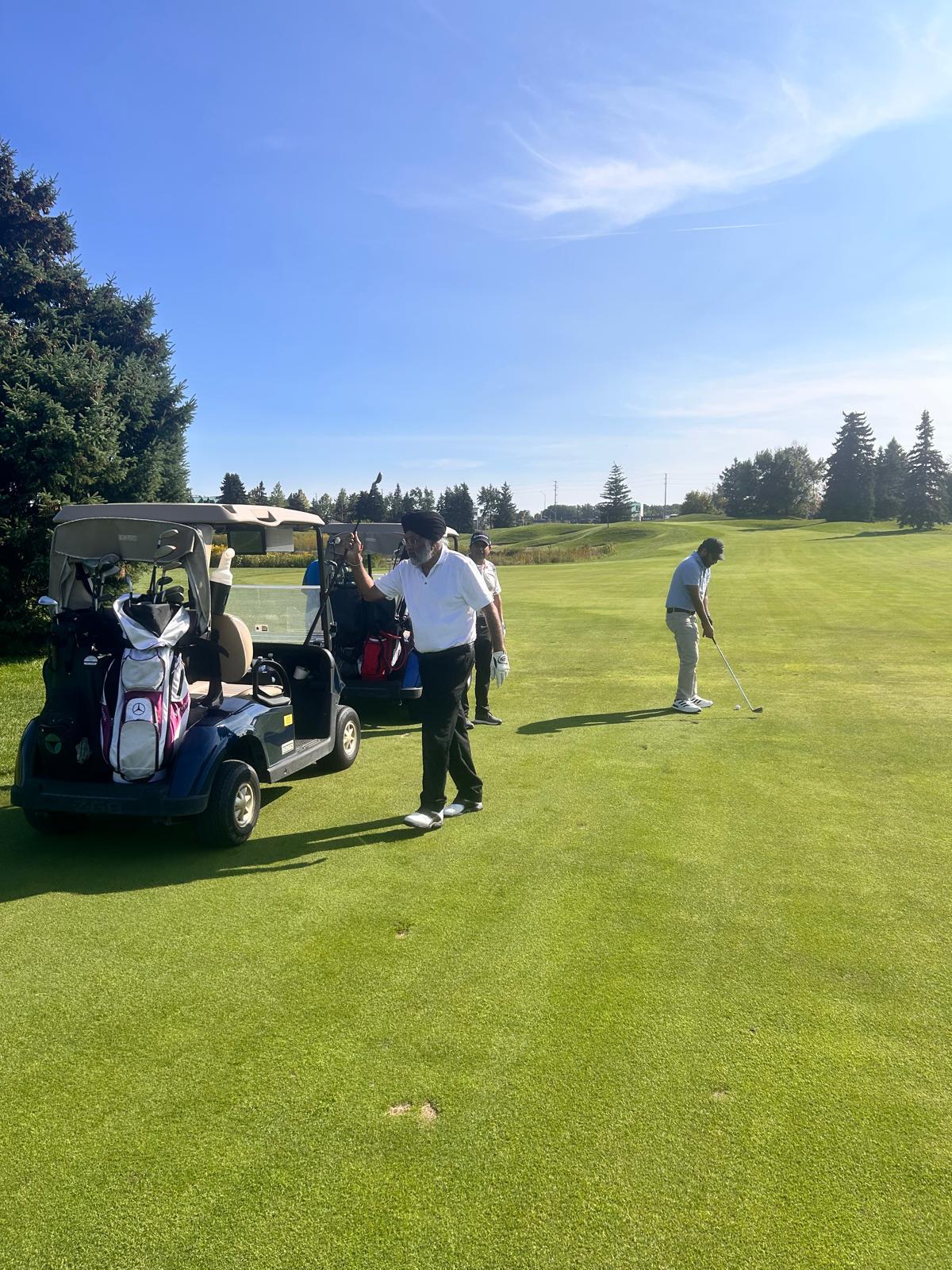 IMEC hosted it’s 3rd Annual Golf Tournament on September 15 at Lionhead Golf Club in Brampton, this time it was done in association with Edward Jones. The event started with Registration, Networking and Boxed Lunch at 12.00 pm, Tee-off was at 1.30 pm and 76 Golfers enjoyed a splendid day of golf till 7 pm. Dinner Reception with close to 100 people was from 7.30 to 9.30 pm including a Silent Auction. A new food bank started by Vipul Jani, founder director for IMEC (Food Bank 4 All) was promoted at the reception and funds raised for it.
